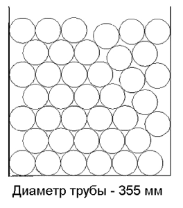 Труба Ø 315Количество труб: 56 шт. Количество, п.м.: 12 п.м. – 672 п.м.; 12,5 п.м. – 700 п.м.; 13 п.м. – 728 п.м. Высота загрузки: 2,52м. Количество рядов: 8 шт. (в рядах по 7 шт.) |