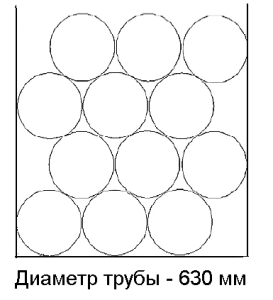 Труба Ø 630Количество труб: 12 шт. Количество, п.м.: 12 п.м. – 144 п.м.; 12,5 п.м. – 150 п.м.; 13 п.м. – 156 п.м. Высота загрузки: 2,52м. Количество рядов: 4 шт. (в рядах по 3 шт.) |